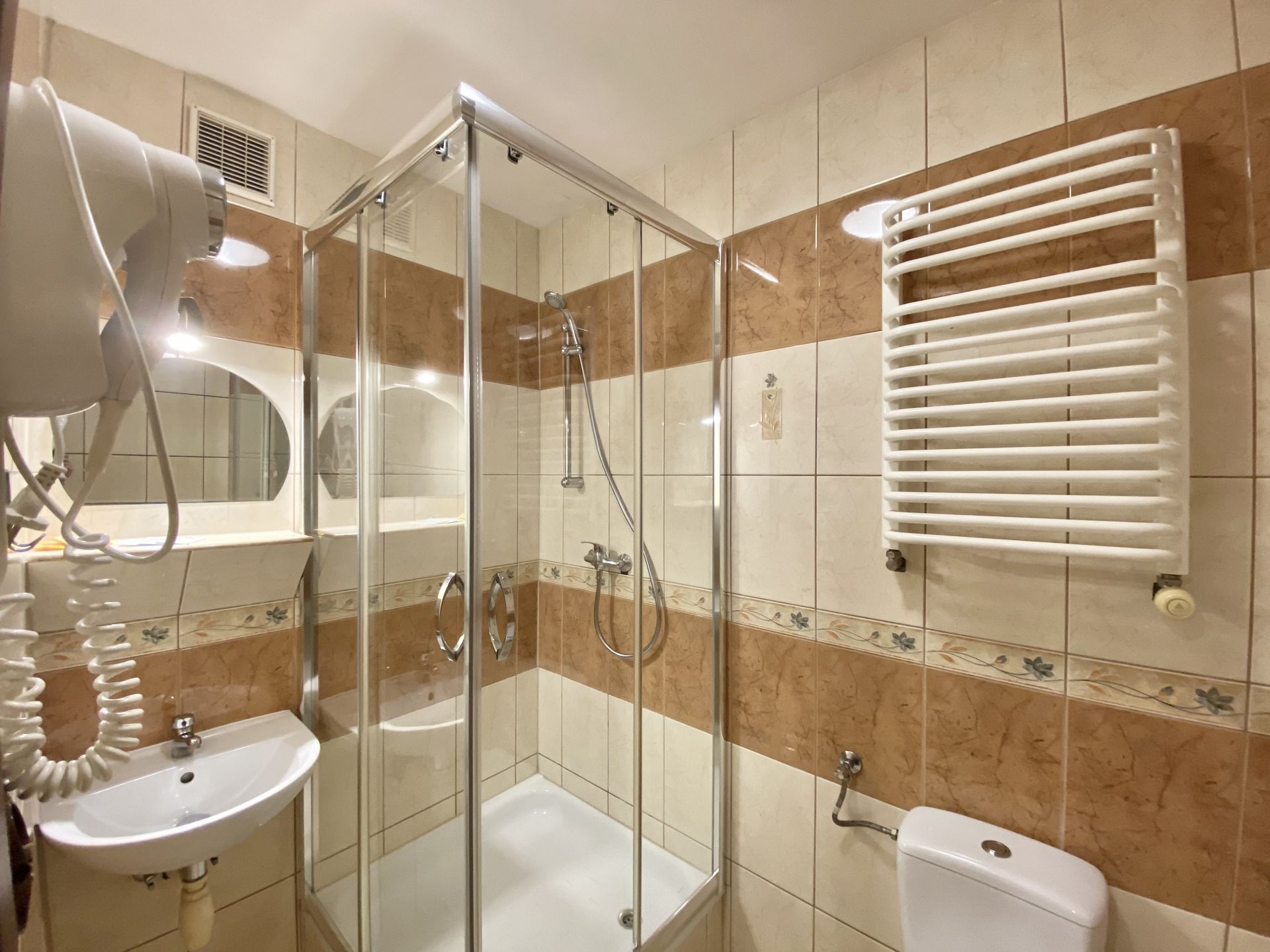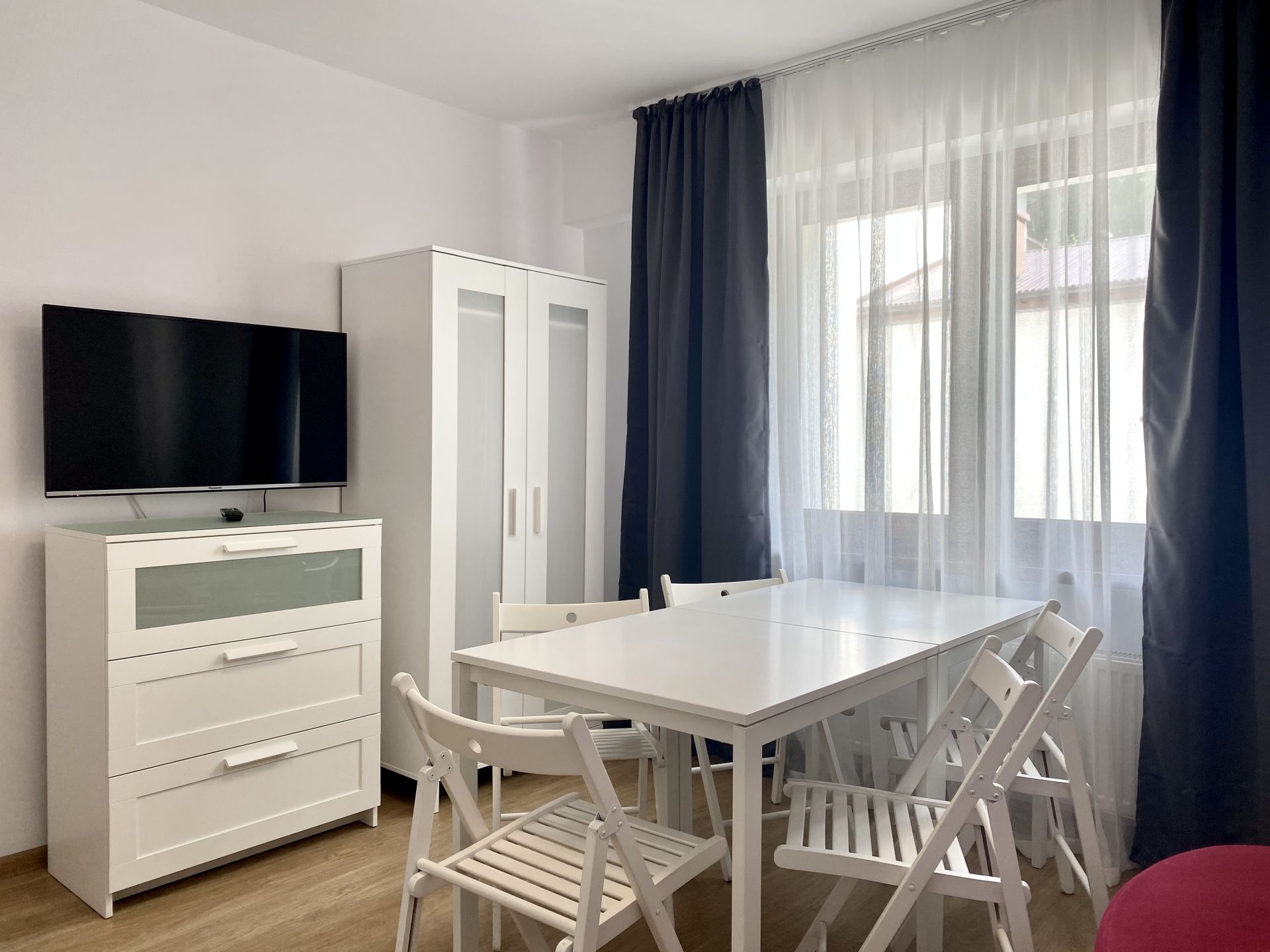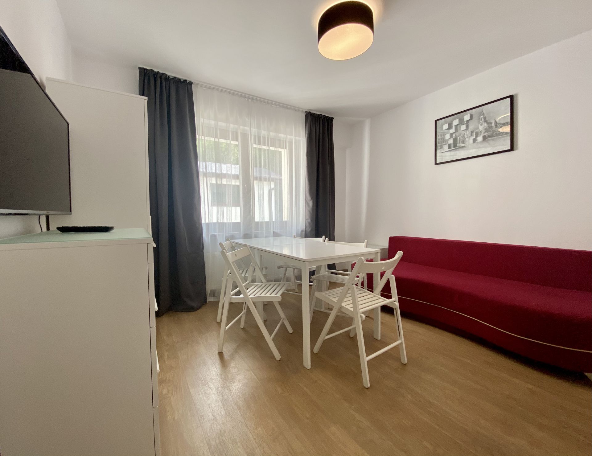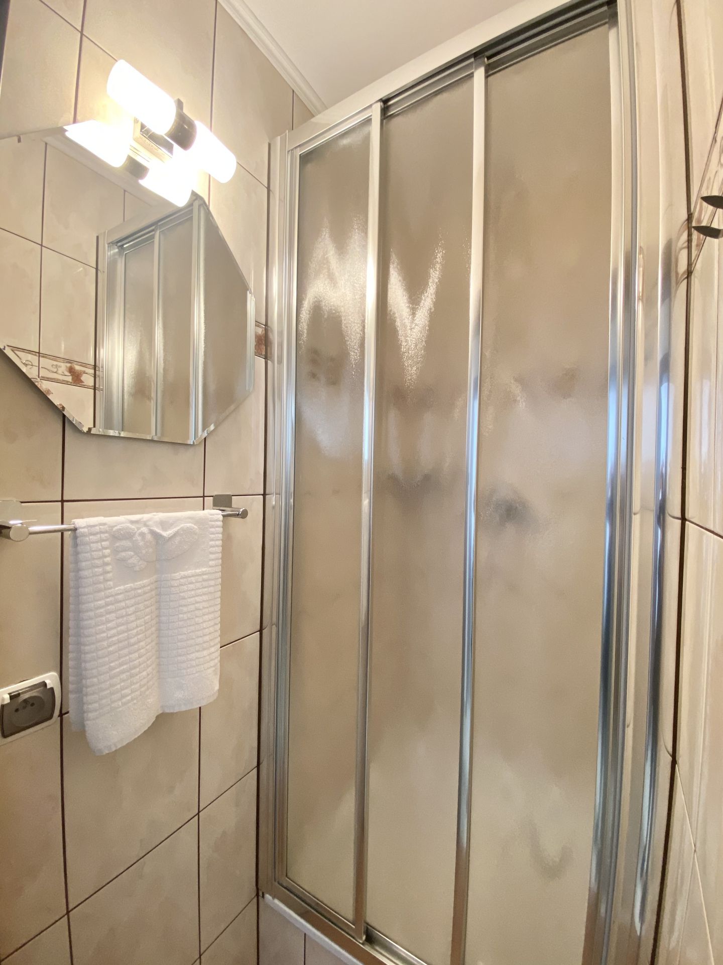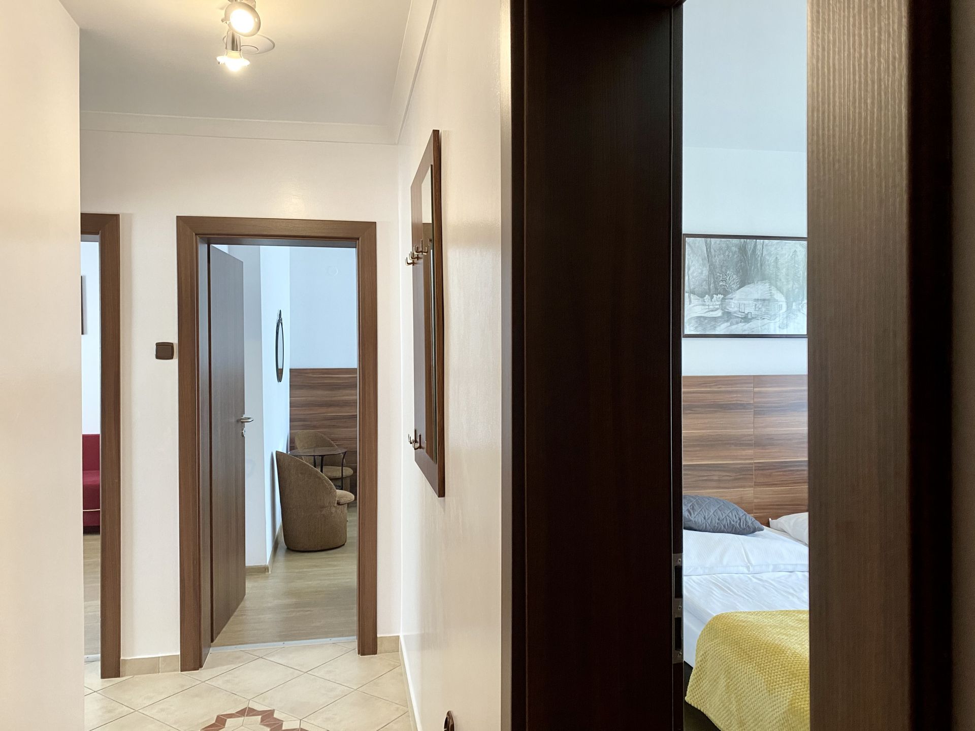 W apartamencie znajdują się 2 sypialnie, pokój dzienny z telewizorem, mały aneks kuchenny oraz łazienka z prysznicem. Apartament obejmuje również dodatkowy prysznic i toaletę.